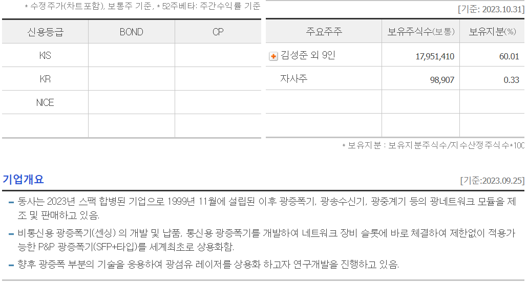 ◐ 시총 : 885억 ◐ PER : 21 ◐ PBR : 4 ◐ 부채율 : 152 %◐ 배당 : - ◐ 이익잉여금 : 152억