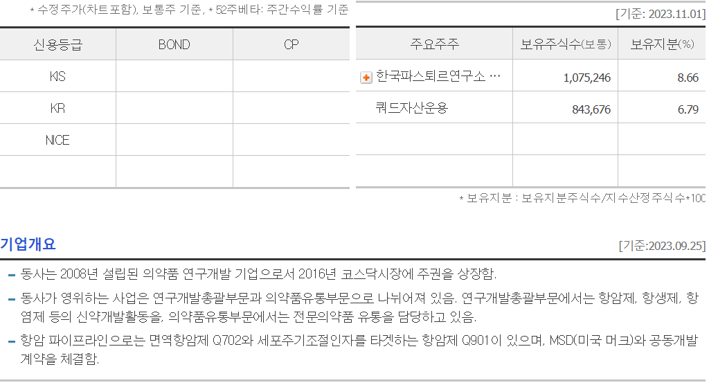 ◐ 시총 : 544억 ◐ PER : ◐ PBR : 1.85 ◐ 부채율 : 9 %◐ 배당 : - ◐ 이익잉여금 : -1621 억
