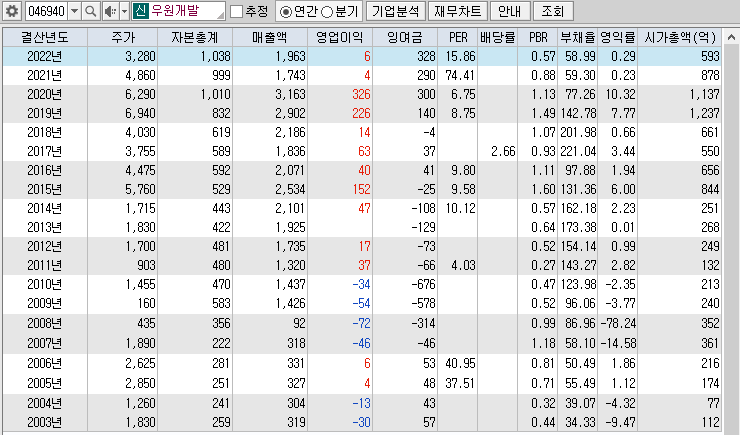 ◐ 시총 : 596 억 ◐ PER : 16 ◐ PBR : 0.5 ◐ 부채율 : 59 %◐ 배당 : - ◐ 이익잉여금 : 328억