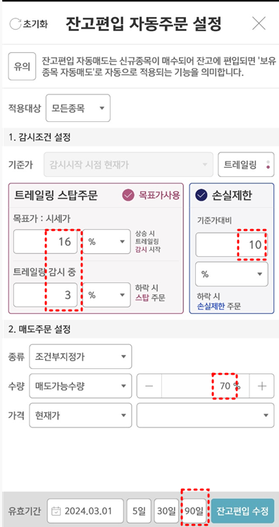 자동매매 스탑로스/트레일링 기능을 이용하면