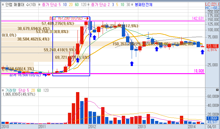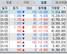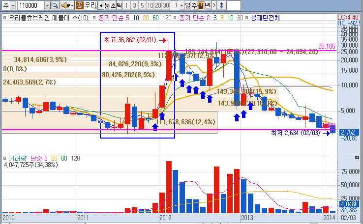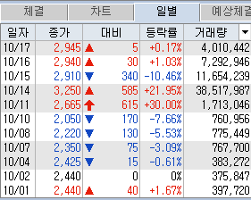 일간의 움직임은 모르지만 2010년 말의 월봉의 기둥은 150% 상승을 했다 고 차트에서는 정보가 남아있습니다.