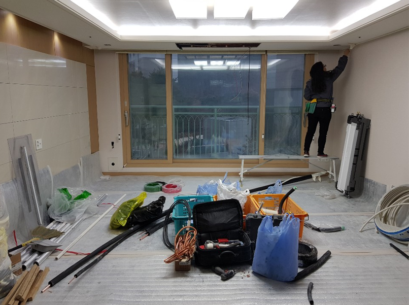 그런데 시스템 에어컨 쪽이 지연되어 9시 청소 시작할때는 입주청소와 겹쳐졌습니다.