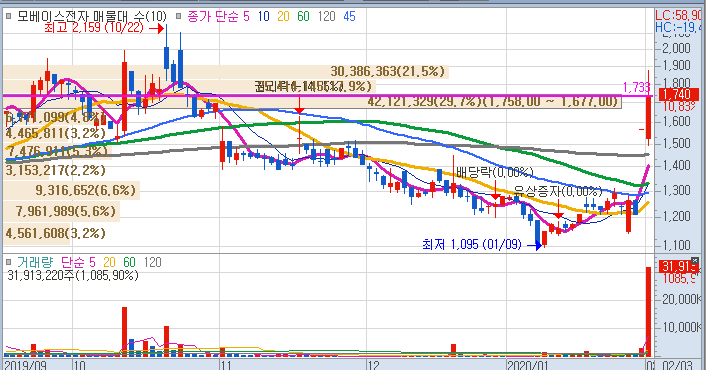 이사 준비로 컴퓨터 볼 시간이 없었습니다. 그러던 중 코로나바이러스가 증시를 강타 하였기에 멘탈 유지 차 계좌를 3일간 봉인하였습니다. 금요일 지인들과 함께하는 카톡방에 모베이스전자. [상!!!] 이란 메세지..