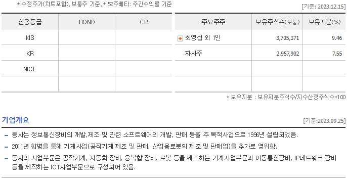 ◐ 시총 : 1755 억 ◐ PER : 15 ◐ PBR : 1.5 ◐ 부채율 : 158% ◐ 배당 : - ◐ 이익잉여금 : -339억