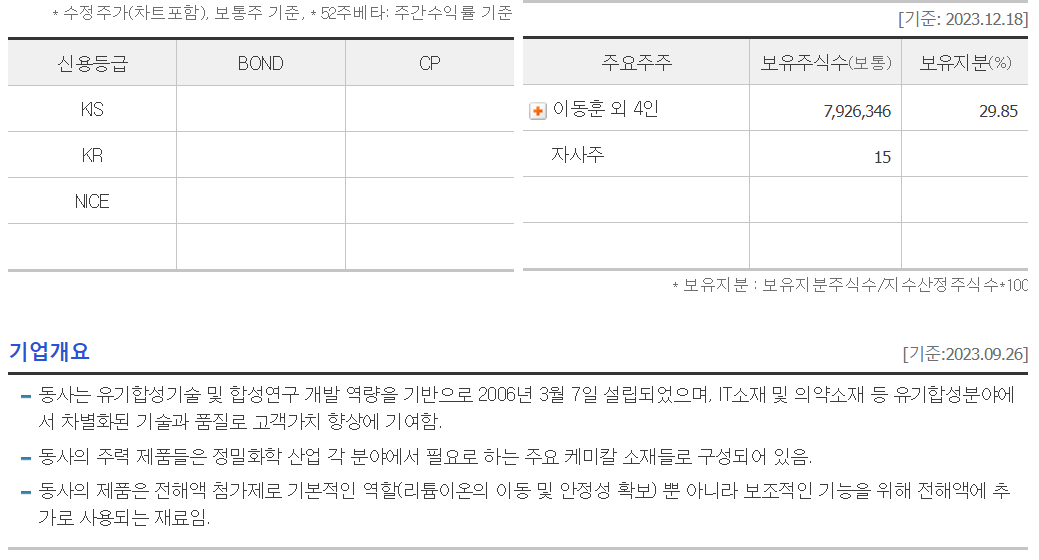 ◐ 시총 : 2069억 ◐ PER : 54 ◐ PBR : 3.5 ◐ 부채율 : 65 % ◐ 배당 : - ◐ 이익잉여금 : 255 억