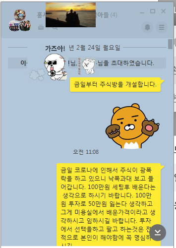 을 세팅하여 주식 카톡방을 개설하고 시작했습니다.
