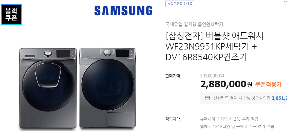 좀 싼 제품 세탁기 19kg + 건조기 14kg으로 조합해 보니