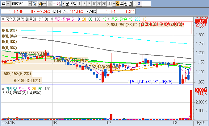 [데일리한국 장은진 기자] 국영재앤엠의 주가가 9일 강세를 보이고 있다. 이는 8일 정부가 발표한 부동산 규제 완화 정책이 주가 상승에 영향을 준 것으로 분석된다.이날 오전 국영지앤엠의 주가