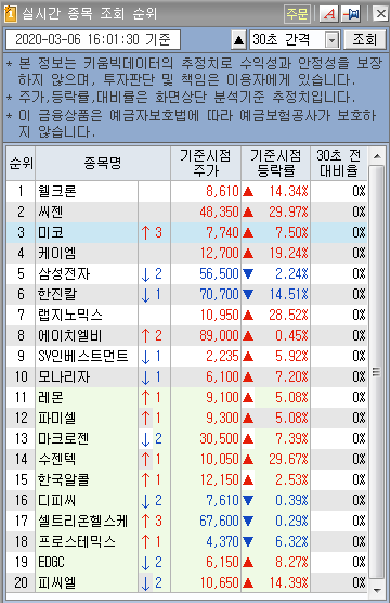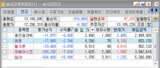 실시간 종목 창을 보면 대충 그날이나 그 주의 흐름을 읽게 됩니다.