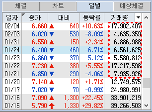 거래량이 2.2백만주나 실력는데