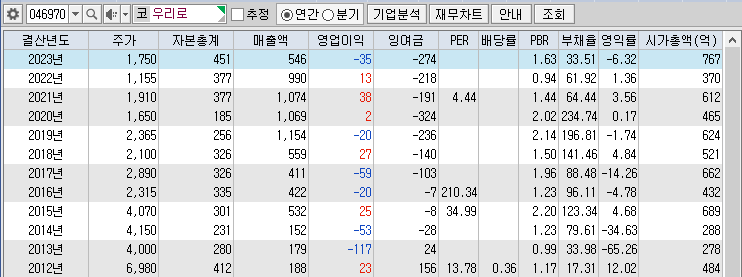 ◐ 시총 : 733 억 ◐ PER : - ◐ PBR : 1.5 ◐ 부채율 : 33 % ◐ 배당 : - ◐ 이익잉여금 : -274 억
