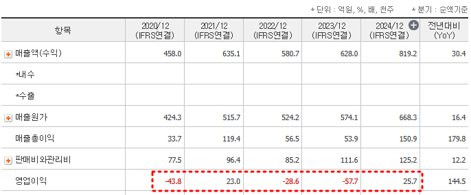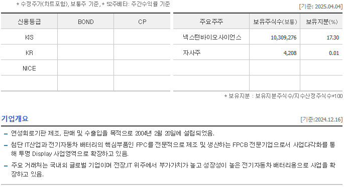 ◐ 시총 : 766 억 ◐ PER : 46 ◐ PBR : 0.6 ◐ 부채율 : 11 % ◐ 배당 : - ◐ 이익잉여금 : -103 억
