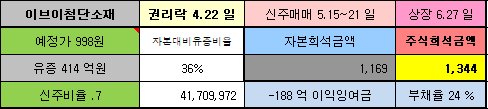 이브이첨단소재 요약 - 시총 2818 억원 - 최대주주 및 특수관계인 지분 일봉차트 매출현황 [주봉 2년] [일봉 3개월] 재무추의 PER : - PBR: 2.3 이익잉여금 : -114 억 부채율 : 69 % 관련기사 https://www.econonew