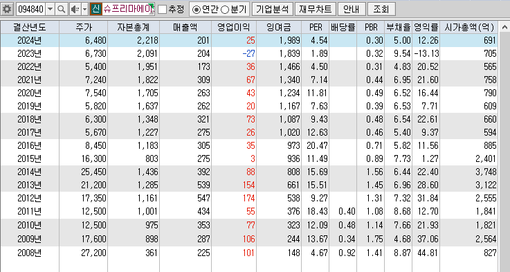 ◐ 시총 : 974 억 ◐ PER : 6 ◐ PBR : 0.4 ◐ 부채율 : 5 % ◐ 배당 : - ◐ 이익잉여금 : 1969 억
