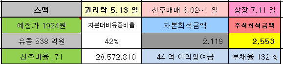 예정가 : 1924 / 신주비율 0.7 / 권리락 5.13일