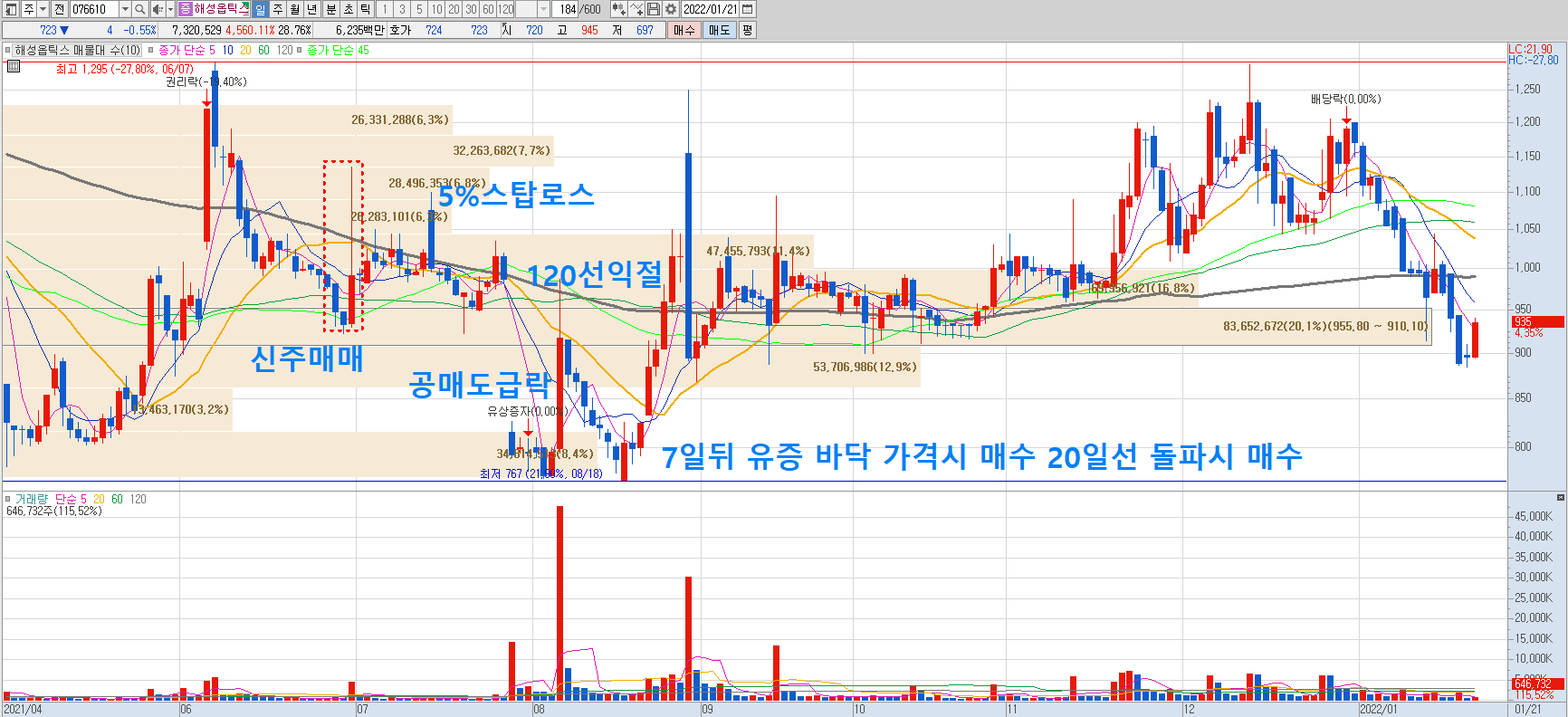 주포 계좌는 대량거래 이후 20일선 지지 이탈시 매도