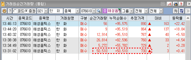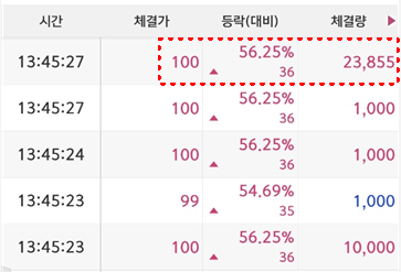 신주인수권 매매 마지막날 1시경 30% 급등이후