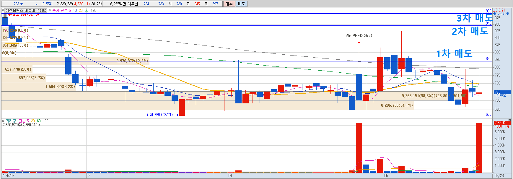 2025.05.20 - [주식 100일 챌린지/유상증자] - 53-3. 기본+기술+재료 분석 [해성옵틱스]