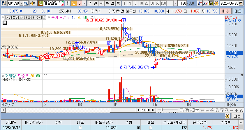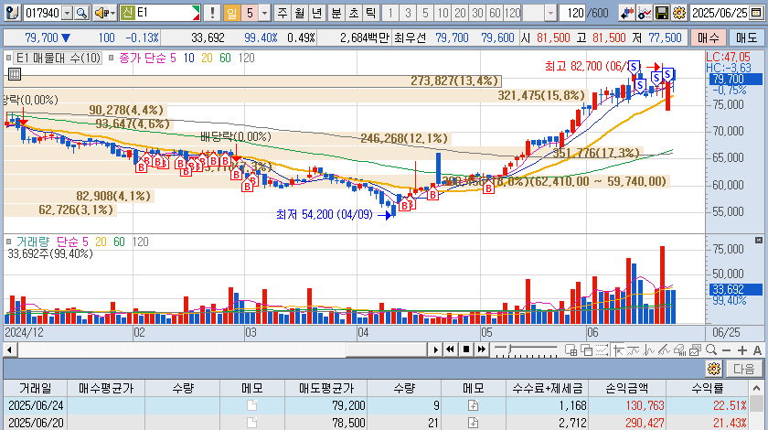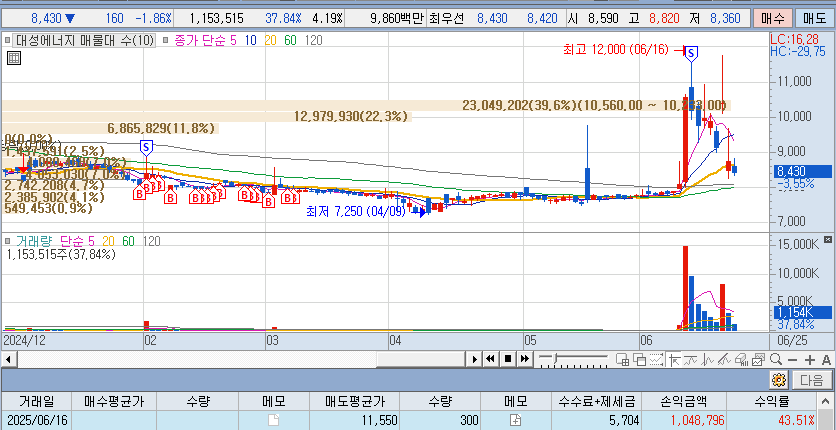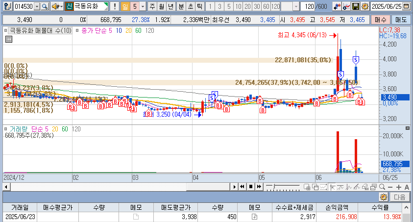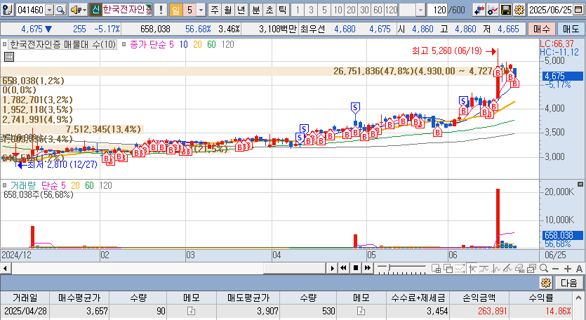 이란-이스라엘 전쟁으로 상한이후 정리- 이후 120선에서 다시 매집 예정