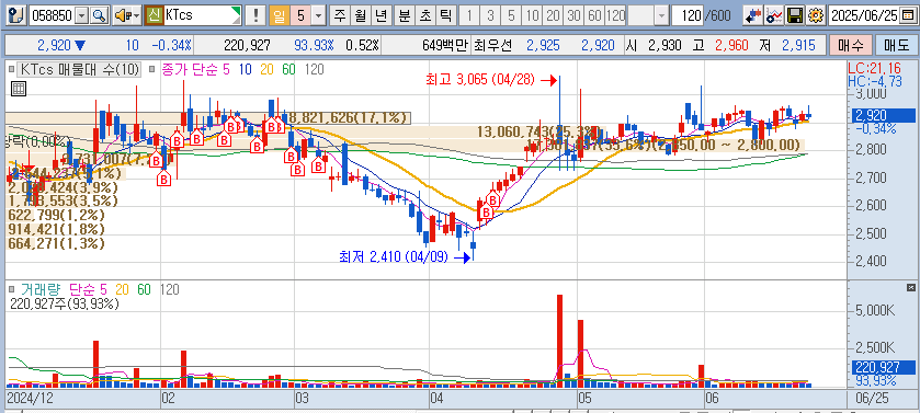 KTCS : 배당 3.7% / PER 22 / PBR 0.5