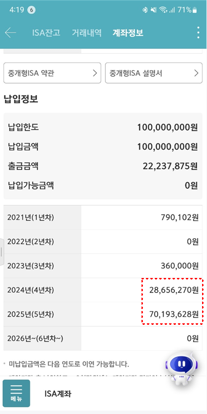 일단 25년도에는 ISA 계좌에 1억 정도를 납입하고