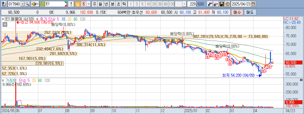E1 : 배당 4.5% / PER 6.6 / PBR 0.5