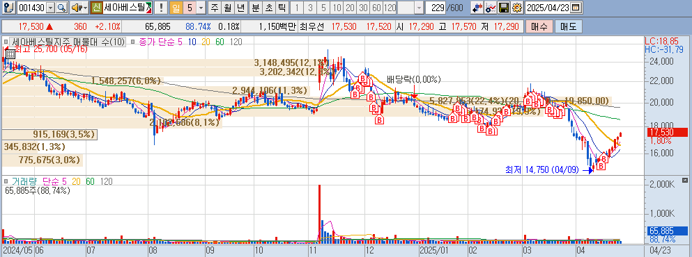 세아베스틸지주 : 배당 6.3% / PER 31 / PBR 0.3