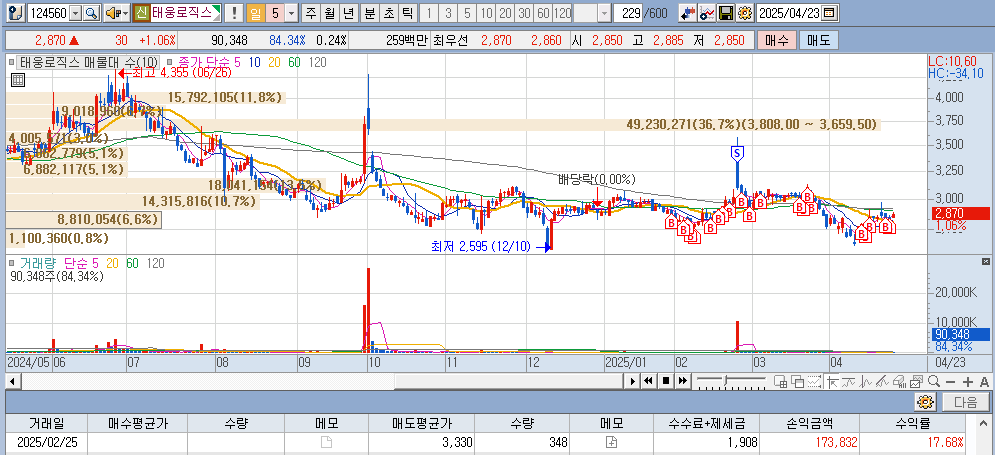 2025.04.23 - [주식 100일 챌린지/매매 실험] - 25년 관심종목 중[서연/한국무브넥스/태웅로직스/KG케미칼/디와이] - 2