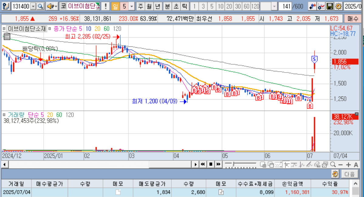 이브이첨단소재 예전에 핫한 종목이라