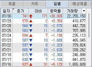 유증이후 한달 조금 지나서 상한가를 보냈네요.