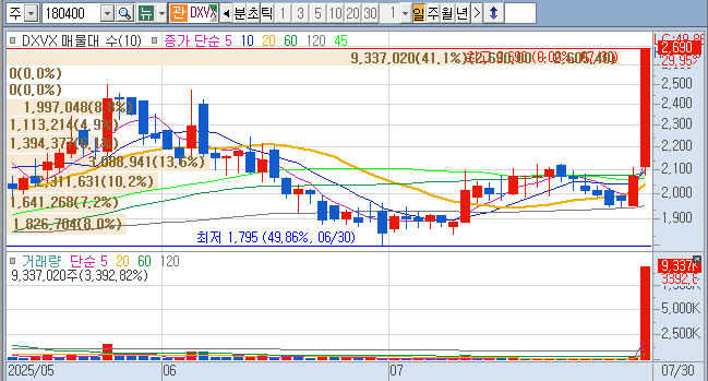 DXVX 최근 셀리드와 함께 연속 상한가로권리락 이후 좋은 흐름을 보였습니다. 2024.06.10 - [주식 100일 챌린지/유상증자] - DXVX [바이오헬스케어/경구용비만치료제/유상증자] DXVX [바이오헬스케어/경