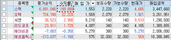 서브계좌 종목에 우 상향을 생각하고