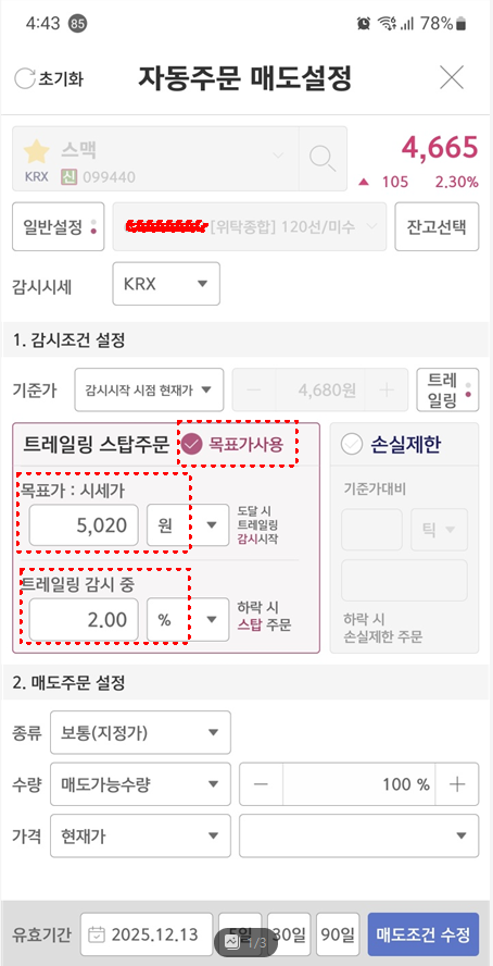 2023.12.03 - [재테크/영웅문S 팁[키움]] - 자동 매매/트레일링 스탑, 스탑로스