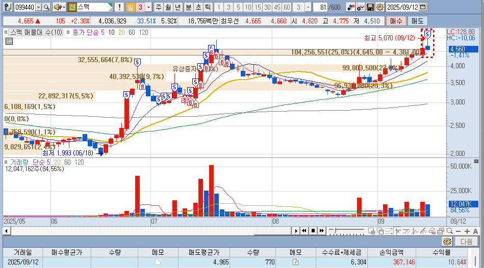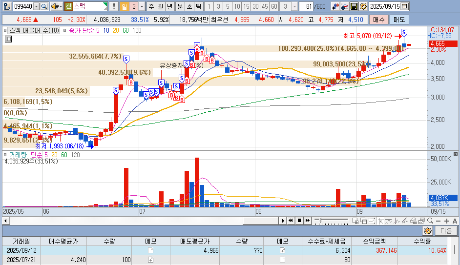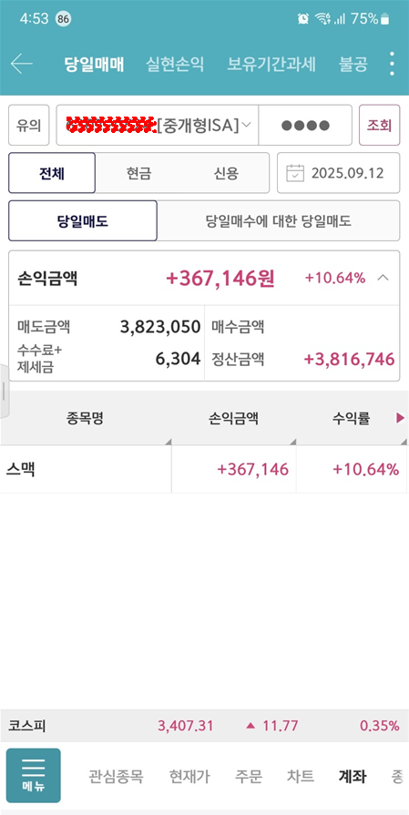 서브 계좌 경우 5천원 돌파를 예상하고 물량을 들어갔습니다.
