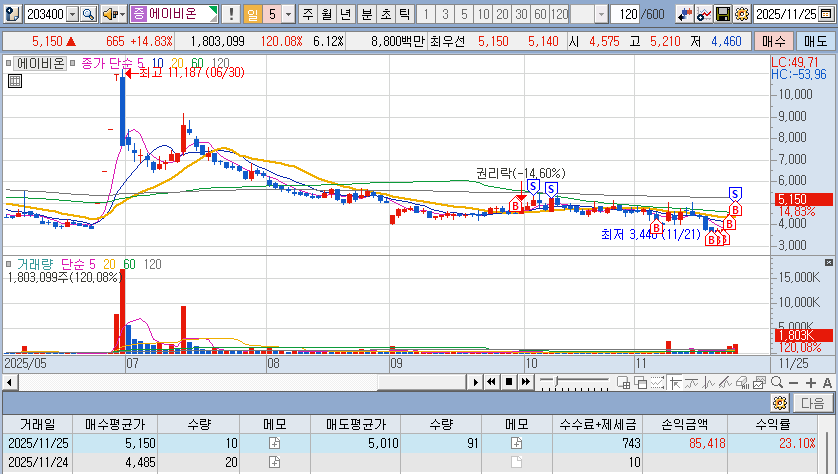 2025.11.24 - [주식 100일 챌린지/유상증자] - 60-3. 슬슬 시동을 거는데...[에이비온]