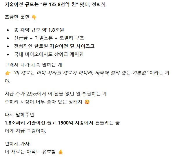 1조8천억원 기술 이전 재료도 있고