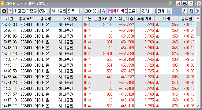 금일 하나증권에서 45만주나 순매수를 하였네요.