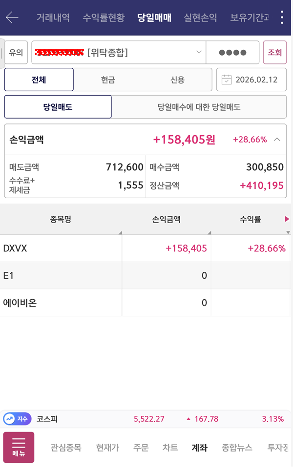 타 계좌에서 매매를 하고 있습니다.