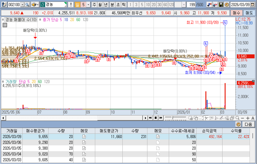 엇그제 익절한 대성에너지, 극동유화 [2등주 라고 보면 되겠습니다.]