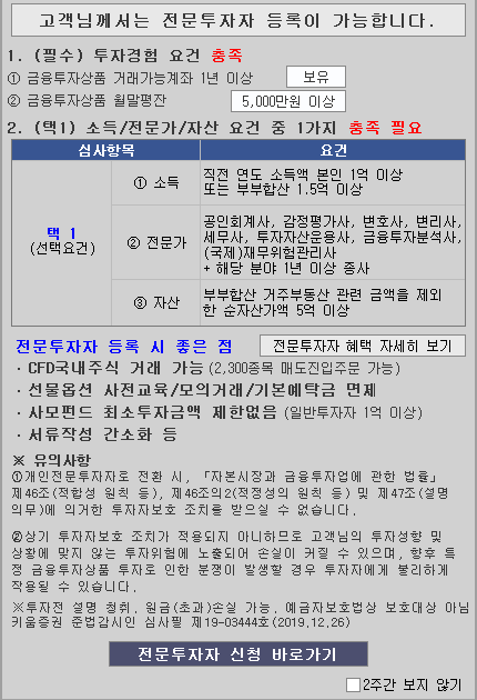 작년 말부터인지 키움 들어가면 팝업창에 전문투자자 신청이 뜨기 시작했습니다.