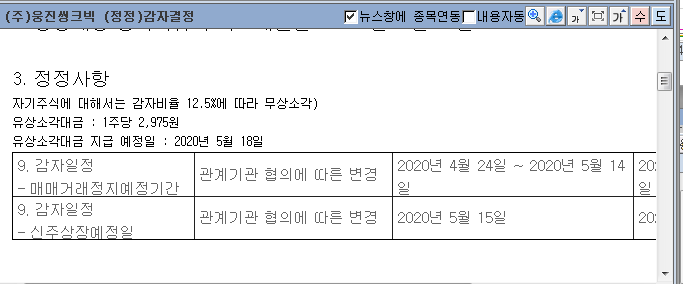 - 유상소각대금 지급 예정일 : 2020년 5월 18일