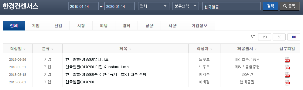 화학제품 및 주정 등의 제조, 판매 회사입니다.