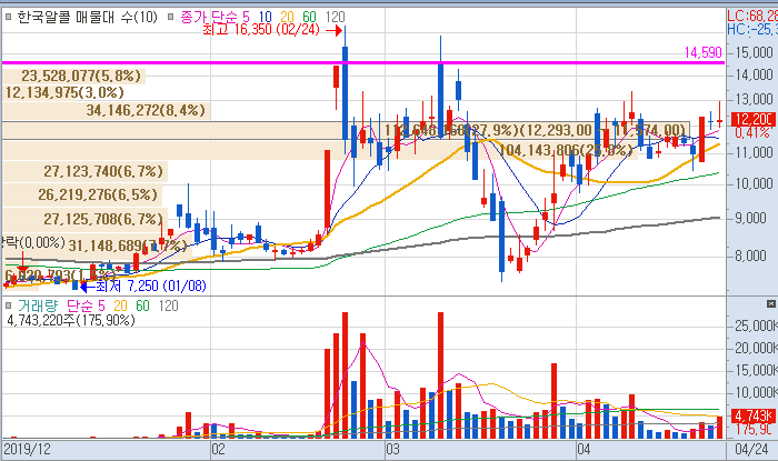 최근 손세정제로 급등을 하여 고점에 매수하여 방치된 종목입니다.
