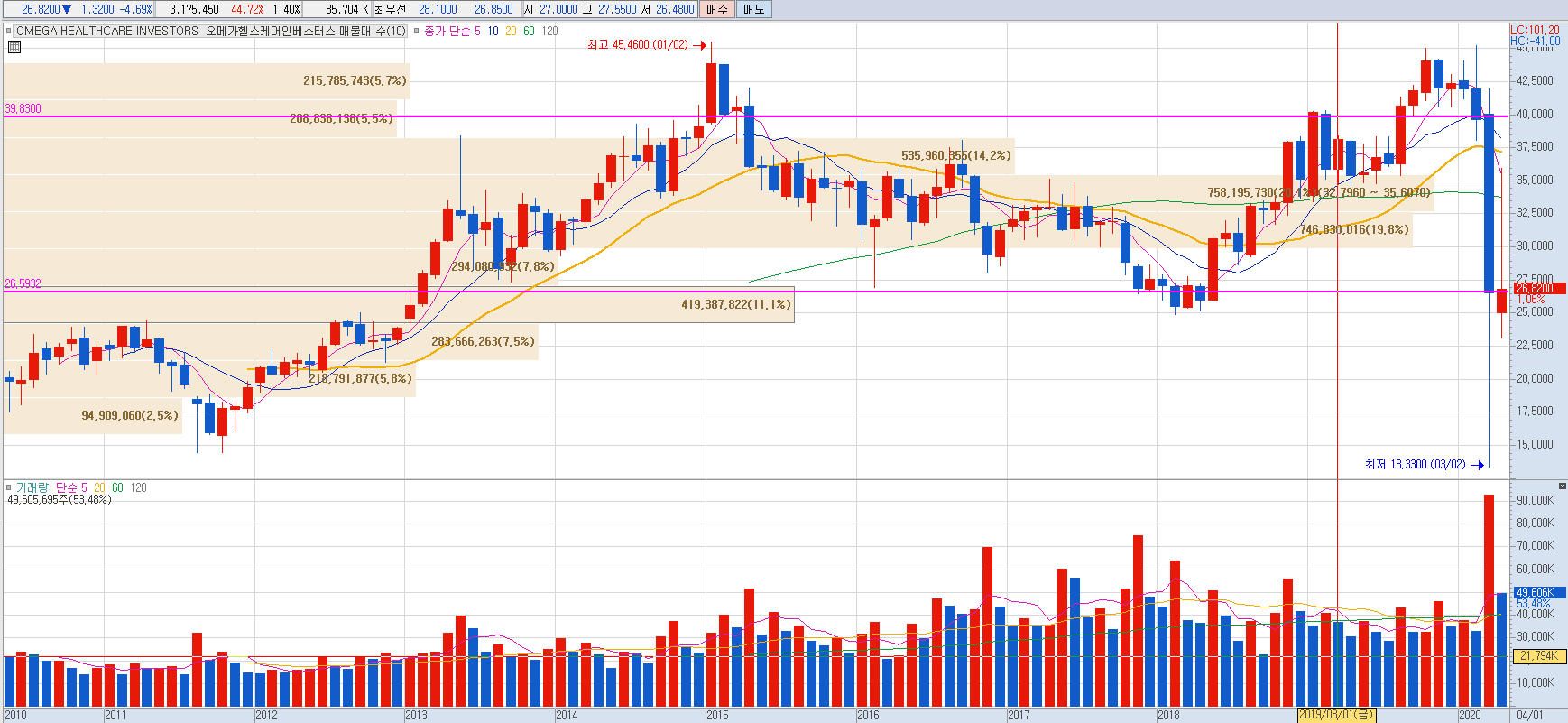일전의 경험을 토대로 일단 단타가 가능한 저의 첫 종목인 OHI로 접근해 보겠습니다.