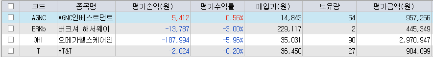 그중 AT&T 같은 종목은 배당락 근처에서 소량씩 매입하여, 물리면 추가 물타기를 하여 배당을 받는 전략을 사용하기 좋습니다.
