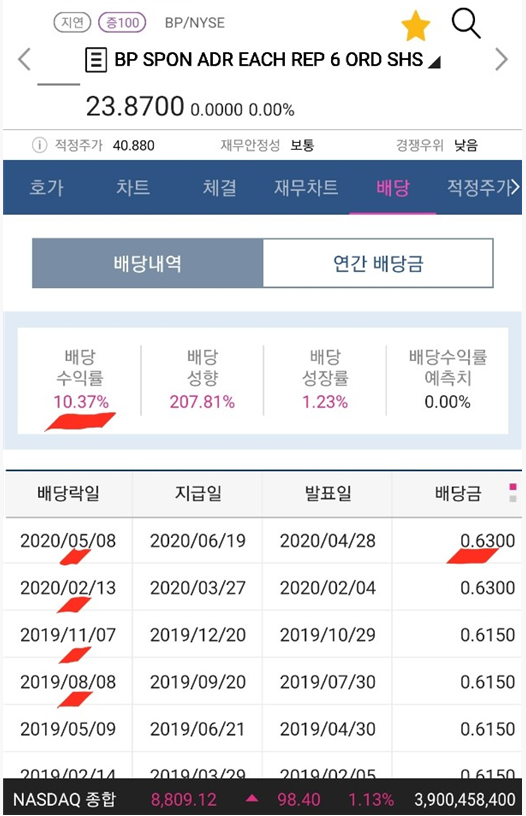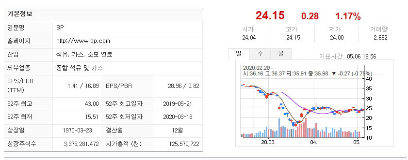 그중 BP 같은 종목은 배당락 근처에서 소량씩 매입하여, 물리면 추가 물타기를 하여 배당을 받는 전략을 사용하기 좋습니다.