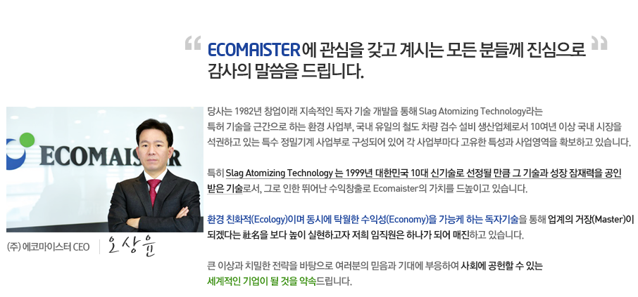 환경 사업은 제조원가에 비해 고 부가가치를 얻을 수 있어서 땡기네요.