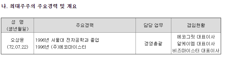 공시에 소형주에서는 보기 드물게 서울대 졸업생입니다.