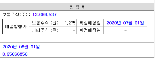 예정가/1주당 신주 비율/권리락