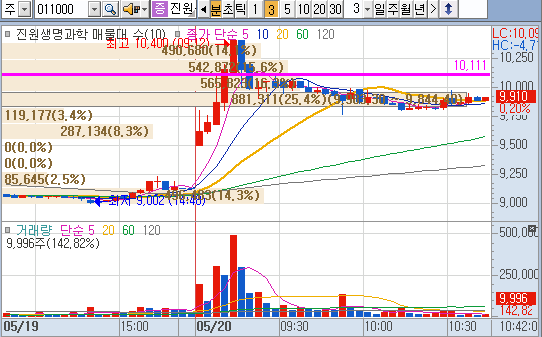 최근 명문제약 이익실현 후 날라가는 주식을 보고 약간 후회했었는데, 이틀만에 유증을 받은 진원생명과학 또한 날라가네요.